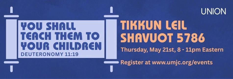 Join us as we culminate the Counting of the Omer with a Tikkun Leil Shavuot, a traditional time of study and reflection as we await the arrival of Torah at Mount Sinai. This year‘s event will be on the evening of Thursday, May 21, 8 PM – 11 PM Eastern time, via Zoom.